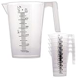 Handy clear measuring pitchers that have raised printed graduated accurate measuring scales on them in metric liters (ltr) and milliliters (ml) with 20 ml graduated intervals. They are great for general laboratory use.