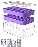 [PERFECT SIZE ICE CUBES] Ice cube maker set comes with two trays and one container. Perfect compact size is 8.26 x 5.03 x 2.83 inches. Each tray makes 24 nice-sized cubes for a total of 48. Tiny cube size is 1.2 x 1.2 x 1.1 inches. This bucket and tray system takes up little room and fits nicely in small freezers.