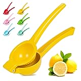 With Buzazzy manual juicer, life is just perfect: You know what's sucky about citrus reamer, strainer, old fashioned tool? They need to deal with hassle of peeling and clear seeds. Do you have an electric lemon press set that you need to worry about electricity or batteries? It's bulky that never get out of the cupboard. Benefits of using our citrus press: Ergonomic design: This orange juice squeezer reduce force of the lemon lime orange juicer against the hand to give your hands a rest. Quality materials: This citrus press handheld juicer ensures a long life of use and without worrying food satety. Durable enough: For kitchen or the bar, this manual juicer is so easy to make frozen margarita pies, salad, Mules and classic cocktails. Best gift: This metal lemon squeezer have six colors for you to choose,simple style and charming color makes for a great gift. 100% Satisfaction Guaranteed: If you're not satisfied with our lemon press handheld juicer, please contact us and we will give you a full refund. Specification: Color: Yellow, Green, Pink, Red, Sky Blue, Aquamarine Weight: 0.4lb, very easy to handle Material: Aluminumlime lime lemon press Bowl Size: 2.9 inches fits limes, lemons or citrus For larger orange it might be necessary to cut into 4 pieces before squeezing them