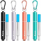 【20PCS Included】 This 4 Packs reusable straws includes 4 stainless steel straws, 4 cases, 4 keychains and 4 silicon pieces. Portable to use.