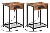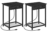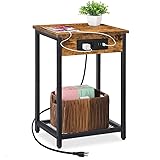 【Side Table with Charging Station】Product dimensions:15.7”x11.8”x21.2"(LxWxH) .The charging station includes two 3-prong AC outlets and two USB ports, which can easily charge your phone, tablet, etc.The long power supply can let you move this end table easily.