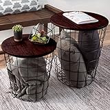 MULTIFUNCTIONAL - Not just for cups, magazines, remotes, and other devices, these nesting tables also offer storage space underneath the retro wood veneer tops. Each metal storage basket with lid lets you minimize clutter while keeping items within reach.