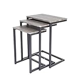 Zenvida's Nesting Tables Set is a minimalist, modern set of three C-shaped side or end tables great for stylish storage. This delightfully rustic and simple table set is perfect for holding drinks and snacks, candles and remotes, lighting, tablets, books, plants or other dÃcor in the living room, family room or wherever you desire function combined with display opportunity. The industrial style nesting tables can be used separately, or put together to conserve valuable living space. Place them nested near a sofa, sectional or chair, then spread the tables out for entertaining or family movie night. This set of 3 stackable accent tables includes a small, medium, and large side table made from sturdy steel and MDF construction. The small table measures 13.5" W x 10" D x 19.75" H, the medium measures 15.75" W x 11" D x 22.25" H, and the large measures 18.25" W x 12" D x 23.5" H. Weight limit for each table is 11 lbs.