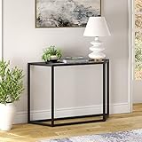 Bring streamlined design to your living room or entryway with this modern console table. Crafted of steel in a metallic finish, this console table features a framed base and tapered rectangular silhouette. The glass tabletop provides a perfect platform for framed photos or a pair of stylish lamps.