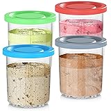 DENEBORE pints and lids - 4 pack compatiable with Creami Ninja ice cream maker machine : NC300, NC301, CN305A, CN301CO, & NC299AMZ NC290 series. ( NOT NC100/ NC200 Breeze and NC500 Deluxe series )