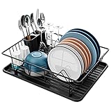 【Special Utensil Holder】Our utensil holder of this dish rack is specially designed with a drain outlet, making it can be hung outside the dishes drying rack, and directs water straight into the drip tray, keeps countertop dry. Also frees up space for storing 2 more cups inside rack