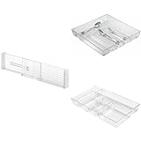 Keep your drawers from becoming junk drawers with the iDesign Plastic Adjustable Deep Drawer Divider. Perfect for use throughout your home, the expandable drawer organizer can be used for organizing cutlery, flatware, gadgets, aluminum foil, tools, trinkets, socks, underwear, cosmetics, hair supplies, accessories, and more. The clear plastic drawer organizer expands from 13.25" to 20.75", so they can be used as dividers for drawers of all sizes. The set of four expandable drawer dividers means you can use them for bedroom, dresser, bathroom, kitchen, pantry, junk drawer, and garage organization. With iDesign, you can live simply and sustainably every day.