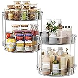 VERSATILE STACKABLE DESIGN: Customize your space by stacking these units into a 3-tier clear Lazy Susan organizer when you buy 2 Sets — well-suited for kitchen cabinet organizer spices or seasoning, cans, beverages, medicine, bathroom counter organizer makeup, perfume, and more