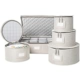 THE ONLY CHINA STORAGE SET with sturdy bottoms so you can handle your dinnerware with confidence. Every inside surface is lined with soft padding, quality linen fabric exterior.