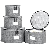 Your dinnerware will be thanking you for giving them such a nice place to be!Quality materials, soft surfaces and sturdy construction all come together to help keep your dinnerware protected and away from dust, so they'll be flawless and ready to go when you need them.--- Includes ---◆ 4 plate storage cases, all with sturdy bottom and top, and holds 12 plates each - Dinner plate case, ø12'' x 6½'' - Salad plate case, ø10'' x 6¼'' - Desert plate case, ø8½'' x 6'' - Saucer plate case, ø7'' x 5½''◆ 44 felt plate dividers, 11 of each size to match the 4 plate storage cases◆ Cup and mug storage case, with sturdy and padded bottom, sides, and dividers - 17''x13'', with 12 square compartments each 4¼'' x 4¼'' and 5'' tallBacked by the StorageLAB 1-year limited warranty. If you run into any trouble with these or simply don't like them, please contact us and we'll make it right by you.