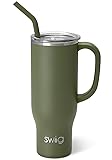 30OZ TUMBLER WITH HANDLE AND STRAW keeps cold drinks cold for 24 hours and hot drinks hot for 3 hours with Swig Life's triple insulated, copper-plated, stainless steel cups. Large travel mug holds up to 30oz of your favorite beverages.