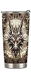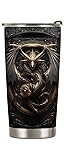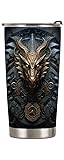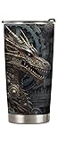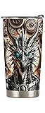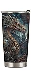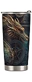 ORCAE 20oz Mechanical Engineer Steampunk Clockwork Dragon, Dragon Gifts, Mechanic Metal Dragon Tumbler Cup, Stainless Steel Insulated Travel Mug with Lid, Coffee Thermos for Women - J