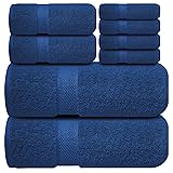 Bath Towel Set: Our Towel set contains 2 Bath Towels size 27x54 inches, 2 Hand Towels size 16x28 inches, and 4 Washcloths size 12x12 inches. These towel set for the bathroom offers you a home of luxury and tenderness as you cuddle up. Made of 100% Cotton Ring-Spun.
