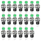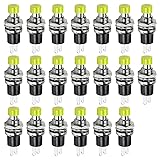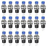 Ampper MINI push button momentary switches 2 pin On Off 1A 250V AC 7MM round SPST Normal Open momentary pushbutton switches Specifications: 1, Push and hold: ON; release: OFF, automatic reset to OFF (Normal Open). 2, Rating: AC 250V 1A, 2 pin SPST ON-OFF 2 positions push button momentary switches. 3, Mounting hole: 7 mm, drill the hole, connect the wires and tighten the screws, easy to install. 4, Cap diameter: 6mm; pin pitch: 3mm. 5, Made of nylon PA66 and stainless steel, terminals: brass, excellent electrical conductivity and high safety. 6, As light switch, horn switch, doorbell switch, PC switch, etc.. 7, Widely used for car, vehicle, Rv and boat, also electrical equipment's switch, industrial and scientific electrical switch, household appliances and more. Complete kits includes: 20 x switches. 20 sets installation screws.