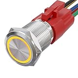 Momentary switch Momentary switches only remain in their on stateas long as they're being pressed. Widely Use Widely used in various additional electricequipment, relay, inside & outside the car(Such as critical lights,foglight, dome light) or any circuit controls -- any application you can thinkof! The switch is IP67 rated, it is also an anti dust and waterproof one whichmakes it great for outdoor use. Specification: - Switch Rating: 5A/250VAC - Contact resistance: ≤30mΩ - Insulation resistance: ≥1000mΩ - Dielectric intensity: 2000VAC - Operation Temperature: -20℃~ +55℃ - Mechanical life: 1,000,000 cycles - Electrical life: 200,000 cycles - Panel thickness: 1 - 10mm - Nut torque: 5 - 14Nm - Protection level: IP67, IK10 - Mounting Cut Hole: 16mm - Operation Type: Momentary - Switch Contact: 1NO 1NC - LED Rating: 15mA, AC/DC 12V - LED Pattern: Ring Indicator - Contact Material: Silver alloy - Button Material: Stainless Steel Note: - The switch come with a rubber O-ring whichmakes it splash resistant but it can NOT be submerged underwater. Packing Include: 1 x push button switch 1 x pigtail socket 1 x wiring diagram