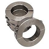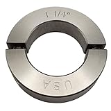 These two-piece stainless steel split shaft collars have an inside diameter of 1.25 inches, an outside diameter of 2.063 inches and a thickness of 0.5 inches. This pack includes 2 split collars and their corresponding screws.