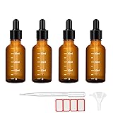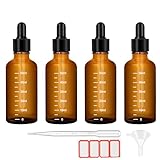 Includes: 4 pack 0.5oz (15ml) scale glass eye dropper bottles + 4pcs Dust Cap + 1 pack small funnels + 4pcs labels.