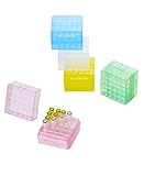 Biologix, Polypropylene, 100-wells, -86ºC to 121ºC, 5 Assorted Colors, without hinged lid, 20 Boxes/Case Made of polypropylene, chemically resistant to alcohols and mild organic solvents Can be repeatedly frozen and thawed Number grids for sample identification Five assorted colors available