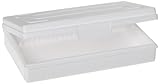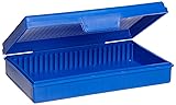 Constructed of durable polypropylene. Slide boxes hold either 25 or 100 standard slides. Hinged lids are held securely closed by latch lock. Stacking feet maximize stability no liner. Measures 210mm length by 169mm width by 37mm height.