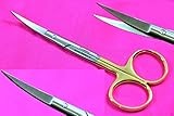 1 EA Premium German -Tungsten Carbide Iris Dissecting Scissors Curved 4 1/2 Inches Gold Rings Ideal for Medical Purpose