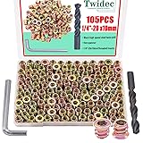 Insert head size: 0.461" / 11.7mm, body size: 0.315" / 8mm, threads size: 0.410" / 10.4mm; 1/4"-20x25mm-48PCS,with 9mm Black high speed steel twist drill and 6mm hex spanner