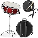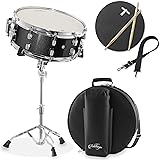 Professional snare drum: This 14" x 6" snare with wires is ideal for all musicians, beginner to advanced. This snare drum with stand provides everything needed for playing and perfecting practice. Set includes adjustable stand, gig bag, drumsticks, neck strap, mute practice pad, and set of drumsticks.
