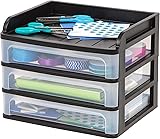 IRIS USA Plastic Stacking Desk Top 3-Drawer Storage Organizer