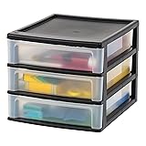 IRIS USA Plastic Stacking Desk Top 3-Drawer Storage