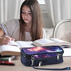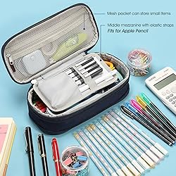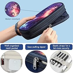 UNIQUE DESIGNS: Comes with a removable hand strap. Zippered mesh pocket can store small stationeries, such as erasers, sticky notes, rubber, sticker, etc. The middle mezzanine with elastic straps can protect frequently-used pens/pencils.