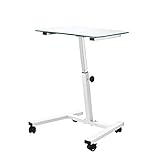 Work the way you want with Seville Classics Sit-Stand Computer Desk Cart and Side Table. Easily move your laptop or writing workstation to any space in your home, dorm, or office. A large main desk area with an independent side table fits full-size laptop computers and mice. The main table also tilts for maximum ergonomic comfort while computing or writing. Enjoy the freedom of having a mobile desk on rolling casters with the ability to adjust to a sitting or standing position. Large side table provides stable space for a mouse, supplies, or a cup of coffee. Tilting tabletop allows you to work in comfort while writing, drawing, or using a laptop. Height-adjustable surface allows the desk to be used while sitting or standing. Four rolling casters allow the table to be moved easily. Welded metal construction ensures the cart is sturdy, but lightweight. Assembled Dimensions: 26" W x 16" D x (27. 5" to 35" H) Weight Capacity: 20 lbs. Weight: 14 lbs. Model #: WEB234