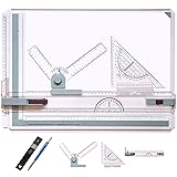 Frylr A3 drawing measuring board or technical drafting table with a parallel motion which slides in a groove, locking into place with finger buttons at either end, convenient to use. The overall parallel drawing board is made of high-strength and tough material and durable. The a3 adjustable drawing board also as an ideal gift for students, designers. Function of Every Tool: - 180 degree protractor marked with equidistant lines for hatching Permanently lubricated guide track for smooth straight edge movement. - Parallel straightedge with STOP and GO locking/unlocking action, marked in centimeters on both edges End lock on straightedge for added stability. - 2 Clamps to hold the paper in place. - Set Square marked with a Protractor. - Ergonomic design for easy, comfortable working. Specifications: ●Material: High strength plastic ●Color: Transparent white ●Size: A3 ●Overall Dimensions: 19.7x14.4 inch (L x W) Package List: 2 x Anti Slip Support Legs 3 x Ruler 2 x Clamps 1 x Protractor 1 x drawing pen 1 x pencil lead 1 x Set square With this angle parallel drawing board, you can make professional drawings.