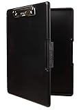 The Dexas Slimcase 2 Storage Clipboard is just like the classic Slimcase, but with a side opening. It is designed to hold standard notebook paper (notebook and A4 paper and spiral notebooks). Measuring 9.5 by 12.5 inches, it is made from high-impact, break-resistant plastic to protect contents and last for years. The Slimcase has an exterior steel clip that holds paper and pads securely. The storage compartment latches closed securely, making it ideal for protecting contents from weather, spills and more. The convenient side opening makes it easy to open, find documents or forms, and work on the go. The slim design makes this Slimcase easy to store in a briefcase or backpack. Unlike aluminum cases, the Slimcase won't scratch desks, tables or car hoods. The Slimcase Storage Clipboard is perfect for teachers, coaches, nurses, tradespeople and more. Ideal for use at school or at home, on the job or on the road. Proudly designed and manufactured in the USA.