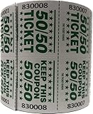 50/50 Marquee Raffle Tickets - 1000/Roll Easy Read Series (Easy Read Blue received on this listing). Each individual ticket 1.75x2inches. "Keep This Coupon 50/50" part goes to the player; "50/50 Ticket" has a place for players to write their name/address (if needed) and is placed into drum for drawing. Made of premium quality paper in the USA, with using USA materials.