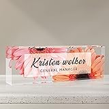 Get this awesome Acrylic Glass Block Name Plate and make an impression! This is a premium 3D look acrylic glass block name plate. It is made of high quality crystal clear acrylic, which means it will be very professional looking, as well as long lasting. This is an excellent gift idea for your teachers, children's teachers, coworkers, or even yourself! You can use this to show your appreciation for hard work, and dedication by giving them one of these name plates. The smooth surface and high-quality crystal clear acrylic make this an impressive addition to any desk or table. Whether it's for holidays, birthdays, work anniversaries, or just because you want to say thank you! Personalized Business Custom Desk Name Plate Upgrade the look of your office desk with this unique beautiful name plates can be used for door sign and also as desk name plate , Our Desk Signs are made with real 100% solid Acrylic , , its perfect gifts to loved ones, friend or a teacher, but also would look amazing as a centerpiece in your office desk or for Decoration nameplate sign , Whether for holidays, birthdays, or work anniversaries ,Home Decor ,Office Decor, classroom, Secretary Sign, nurse office, women decor, teacher gift, doctor office, graduation gift, mothers day gift, Dad gift, business gift, indoor decor. Are you still using the traditional and boring desk nameplate? Wouldn't you like to have customized desk name plate? Clear acrylic glass custom desk name plate personalized must make you stand out. Printed directly with the latest technology UV cured ink that will never fade or peel. Custom Name Plates for Desks on Acrylic Glass Decor. From colorful flowers to business style. WE PROVIDE 2 OPTIONS TO CHOOSE FROM 👉 OPTION 1: NAME: We will print your name centered on the block. 👉 OPTION 2: NAME & POSITION: We will print your name and Position /Title centered on the block.
