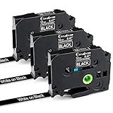 3 packs tze-345 tz-345 compatible with Brother p touch label tape 3/4 inch black. Size: 18mm x 8m (0.7'' x 26.2'). Color: white on black.