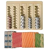 Coin Identification: Coin Sorter tray by 5 different molded columns by clearly labeled compartments for Pennies, Nickels, Dimes and Quarters Coins. with staggered compartments for effortless use, each compartment within a column holds exactly five coins of the denomination and clearly labeled numbers to help you count your coins or add up totals quickly