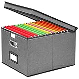 Improved File Storage Box: Our file storage organizer has been upgraded with more sturdy materials and reinforced fabric for better bracing and bearing capacity. Made with premium quality MDF and PP board, this box can easily accommodate hanging folders and has a lid that fits perfectly on top.