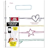 LASTS ALL YEAR. GUARANTEED The Five Star Spiral Notebook is a great choice for classroom notes. The colorful Pastel Waves design features artistic watercolor brush strokes for a sense of serenity. Compatible with the Five Star Study App, you can easily scan, study and organize notes on your phone Create instant digital flashcards and sync notes to Google Drive and access them anywhere from any device. 1 subject notebook has 80 double-sided, wide ruled sheets for organized notetaking. The sheets fight ink bleed and are perforated for quick and easy tear out. The sheets measure 8" x 10-1/2" when torn out. Tough pockets help prevent tears and hold 8" x 10-1/2" loose sheets, handouts and more. Durable, plastic front cover is water-resistant to help protect your notes all year long, while Spiral Lock wire helps prevent snags on clothes and backpacks. The notebook pages are made with SFI certified paper. This notebook is recyclable – just remove the reinforcement tape on the pocket and recycle the rest Guarantee is valid for one year from purchase or delivery date, whichever is longer. Does not cover misuse.