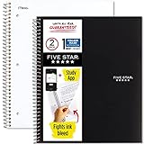 LASTS ALL YEAR. GUARANTEED!* This Five Star 1 Subject Notebook is full of features. Compatible with the Five Star study app, you can easily scan, study and organize notes on your phone! Create instant digital flashcards and sync notes to Google Drive and access them anywhere from any device. 1 subject notebook has 100 double-sided, college ruled sheets, which fight ink bleed. Sheets measure 8-1/2" x 11" and are perforated for easy tear out. Tough pockets help prevent tears and hold 8-1/2" x 11" loose sheets and handouts. Covers are water resistant to protect your notes and our Spiral Lock wire helps prevent snags on clothes and backpacks. Made with SFI certified paper. Notebook is recyclable – just remove the reinforcement tape on the pocket and recycle the rest! 2 pack available in Black and Forest Green. *Guarantee is valid for one year from purchase date. Does not cover misuse.