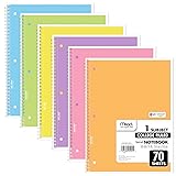 The Mead Spiral 1 Subject Notebook is perfect for a variety of uses, including in-class assignments and homework. Contains 70 college ruled, double-sided sheets, for a total of 140 notetaking pages. Sheets measure 7-1/2" x 10-1/2" when torn out, with an overall size of 8" x 10-1/2". Perforation easily tears out with clean edges. College ruling is ideal for older students who prefer more lines per page. Notebook is 3-hole punched to store in your favorite binder. Covers are coated to help improve durability and the cover has a writable label so you can assign the notebook to a specific subject. 6 pack includes Pink, Green, Blue, Yellow, Purple and Orange.