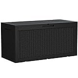 Keep your outdoor indoor space organized with Devoko 100 Gallon Waterproof Resin Deck Box. Our storage container provides you with a simple and efficient way to save space in your home, for storing patio furniture cushions, garden tools, sport equipments,and your family souvenir. Also, it can be used as a bench, with its stylish design, it can be a great decoration for your outdoor life. Deck box outdoor storage box large outside storage waterproof storage box Features: -Stylish rattan pattern design suit for your deck, garden, yard, porch and poolside. -Waterproof poly resin meterial prevent fading, rusting, peeling and bending. -Gas poles design for easy opening and slowly closing, and prevent getting clamped. -Lockable lid keeps your belongings safe and secure. -Side handle on both side for easy and comfortable moving arround. -KD design, easy to clean and assembly. Dimensions: 47.8"L x 21.4"W x 24.6"H Storage capacity: 100 Gallon Meterial: Resin & Steel Color: Black/Light Brown/Grey/Dark Brown