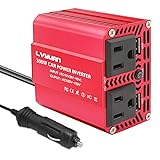 Best power inverter for lightweight travel! Convenience and safety always comes to the first when talking about portable vehicle power inverter. Equally important is portability, the ingeniously designed interior architecture and aluminum alloy housing makes it a dependable mini car AC adapter on the road. Like joy that grows when shared, happiness also multiply with more car power outlets. 2 U.S. standard outlets and 2 USB charging ports (Max 3.1A total output) can ensure a whole family usage. People tends to have less confidence with little one, can't believe in the safety of mini inverter for car. However, you can fully trust in the quality of this car charger with plug outlet, 5 protection technology which can keep your devices far away from overheating, under and over voltage, short circuit and overloads. Quick-identify your car adapter's working status with LED indicator, it's working when the light turns blue, and malfuncting when the light turns red. Versatile power inverter for every journey-the perfect car charger adapter for road trips, vacations, camping, and emergencies! Never run out of power when you need it most. Toss it in your travel kit and stay charged wherever you go! Specification: - Color: Red - Output Power: 150W - DC Input: DC 11V-15V - AC Output: 110V 60Hz - USB Ports: 2 USB Charger Ports, Max. Output 3.1A - Size: 3.3 x 3.1 x 1.9 inches - Weight: 8.8 oz (250g) Our Warranty: 24-Months warranty 24 Hours dedicated email customer support