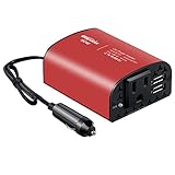 Overview The strong protection system and the perfect design makes it the best choice for your trip. Ideal for the electric appliances in the car such as lamps, cell phones, GPS, laptops, MP3 players and power tools. Maybe you don't often use it, but everyone should get one in the car, just in case. Silent Fan: Smart cooling fan makes the car power inverter silent when operating, and it runs faster when it gets warmer. Safety: Full-protection with short-circuit , low-voltage , over-charge,over-voltage, over-load,over-temperature protection,built-in fuse. LED Indicator: Green-operation, red-fail. Utility Cord & Cigarette Lighter: Placed random, about 16 inches length cable with cigarette lighter plug since we can reach it to power a laptop in the rear seats. Product Specification Input: DC 12V/20A (Max) AC Output: 110V USB Output: DC 5V/2.1A+1A Total Power: 150W Low Voltage: ≤9.5V Over Voltage: ≥14.5V Size:3.4*2.5*1.5 inch Product Weight: 8 ozOptimal Use and Precautions : When charging your iPad or large device, please use the 2.1A USB port and keep the other USB port free. Please understand your device wattage. Caution! do not use high power electric devices such as hair dryers, electric heaters, curling iron and etc. Not recommended to use for a long time when vehicle is not running. Package List : 1 x Power Inverter 1 x User Manual