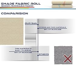 High Qualtiy Material - The sun shade fabric roll is made of 180GSM high-density polyethylene (HDPE) material, which is durable for long-lasting performance. It allows air and water to through the fabric, and not easy to fade.
