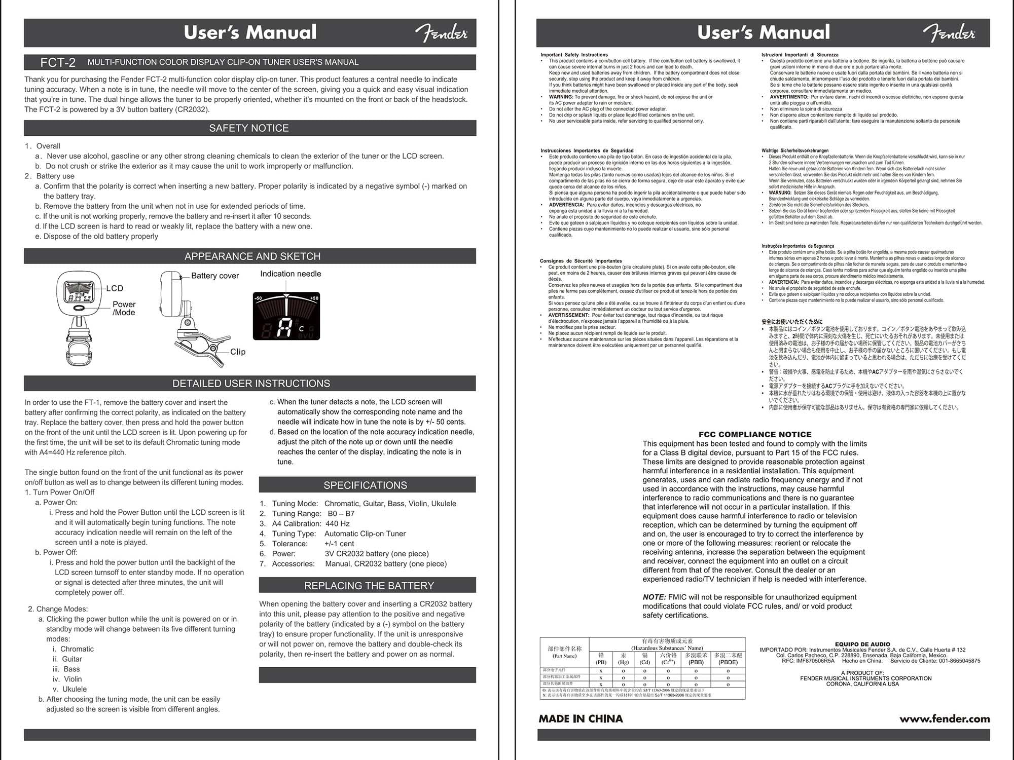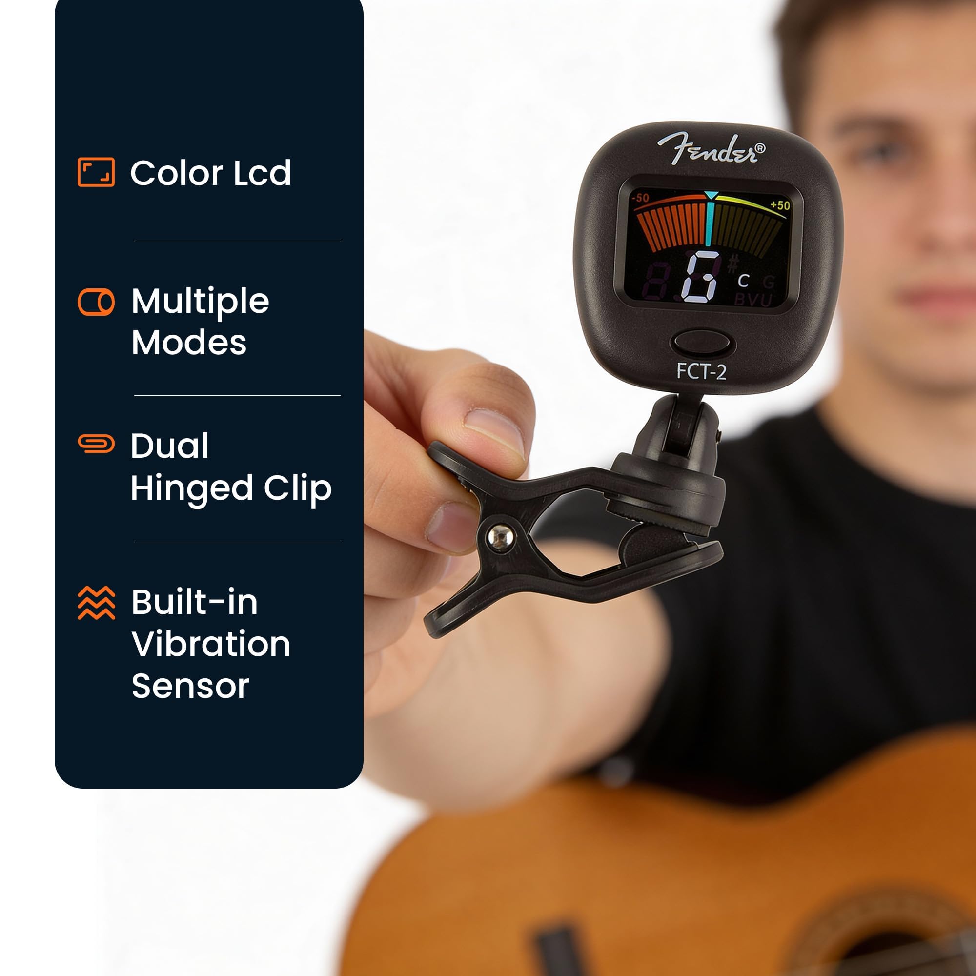 Fender FCT-2 Professional Multi-Instrument Clip-On Tuner for Guitar, Bass, Ukulele, and Violin