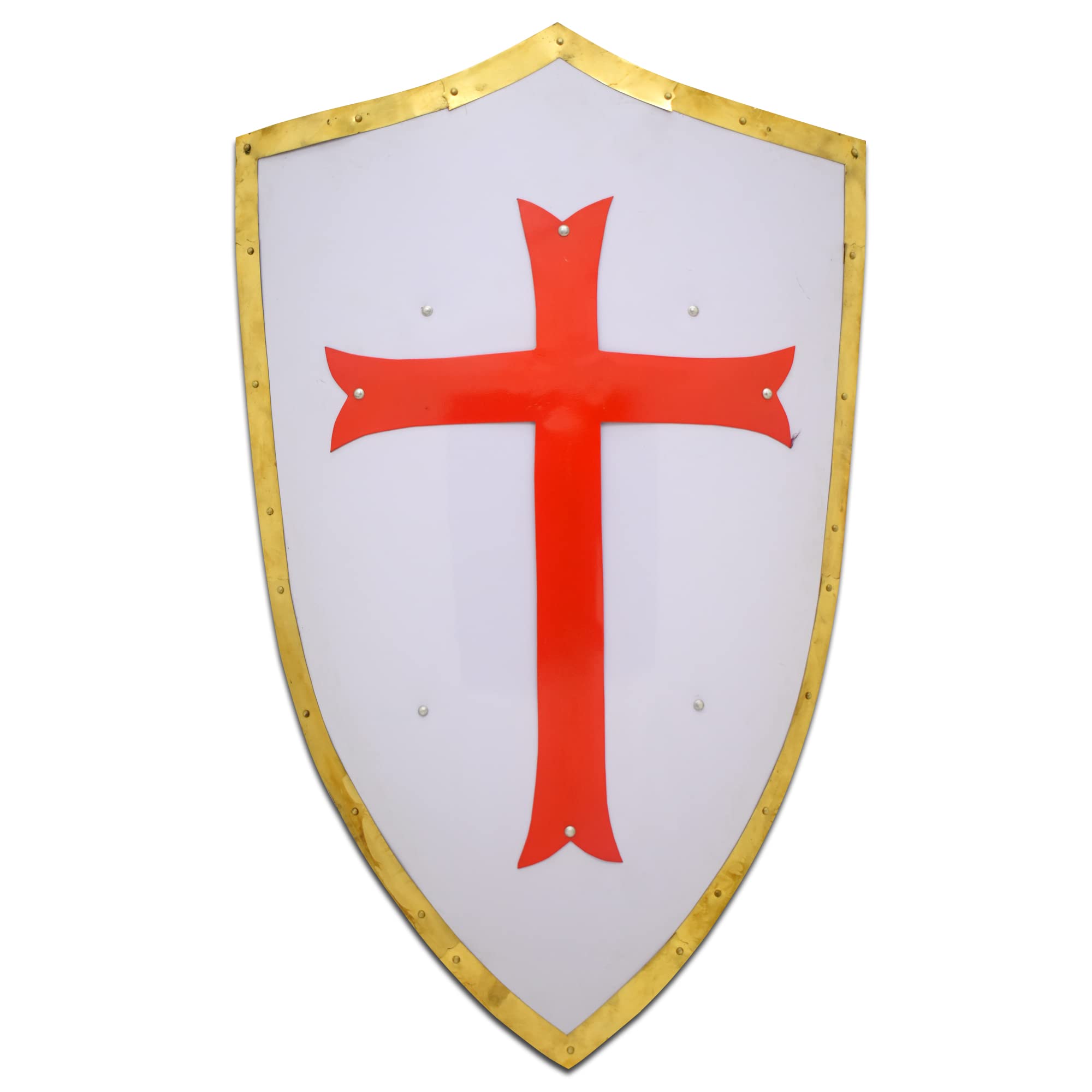 Medieval Warrior Knight Templer Crusader Shield 18G Steel LARP (White & Red)