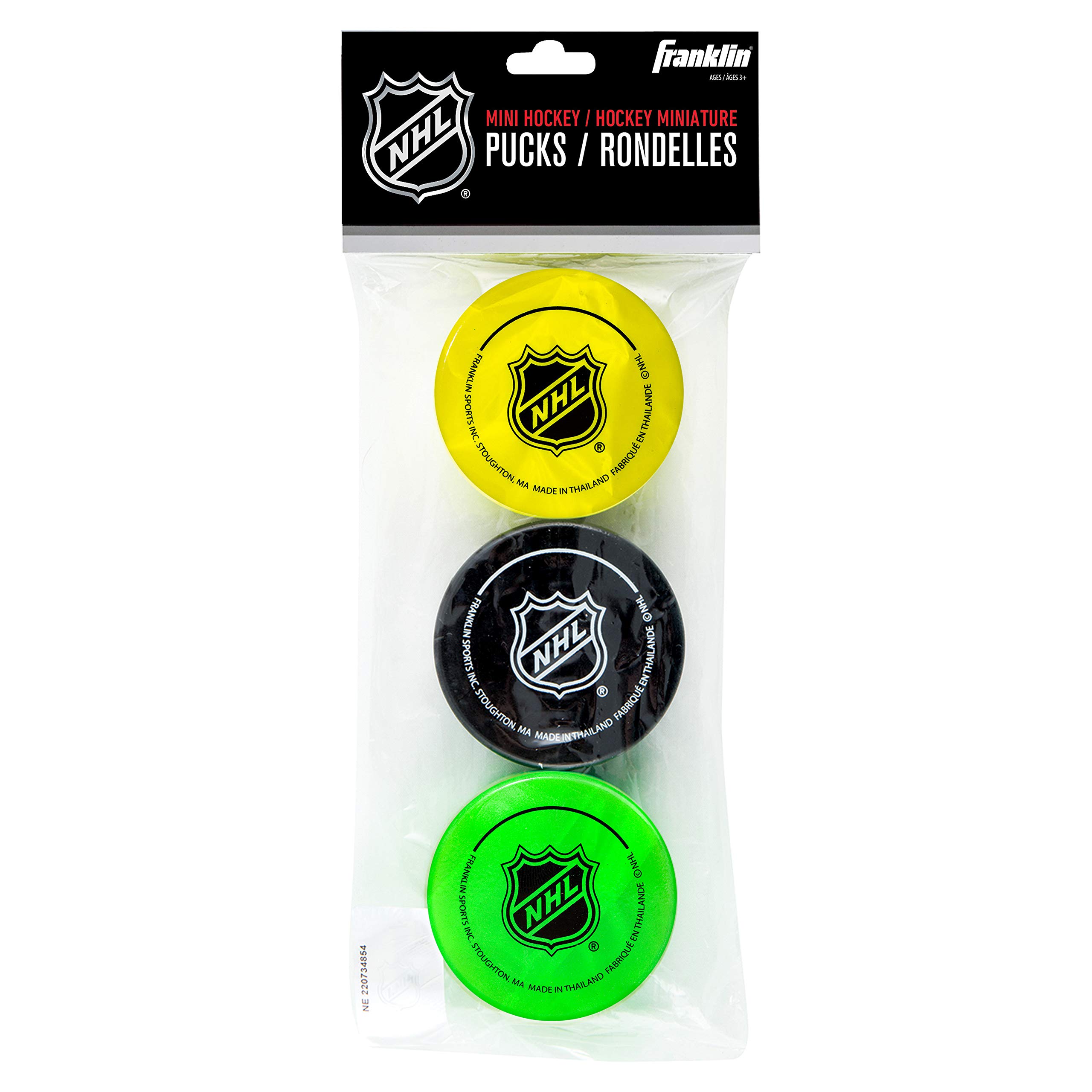 Keep your knee hockey games alive with the Franklin Sports NHL Mini Hockey Pucks 3-Pack!