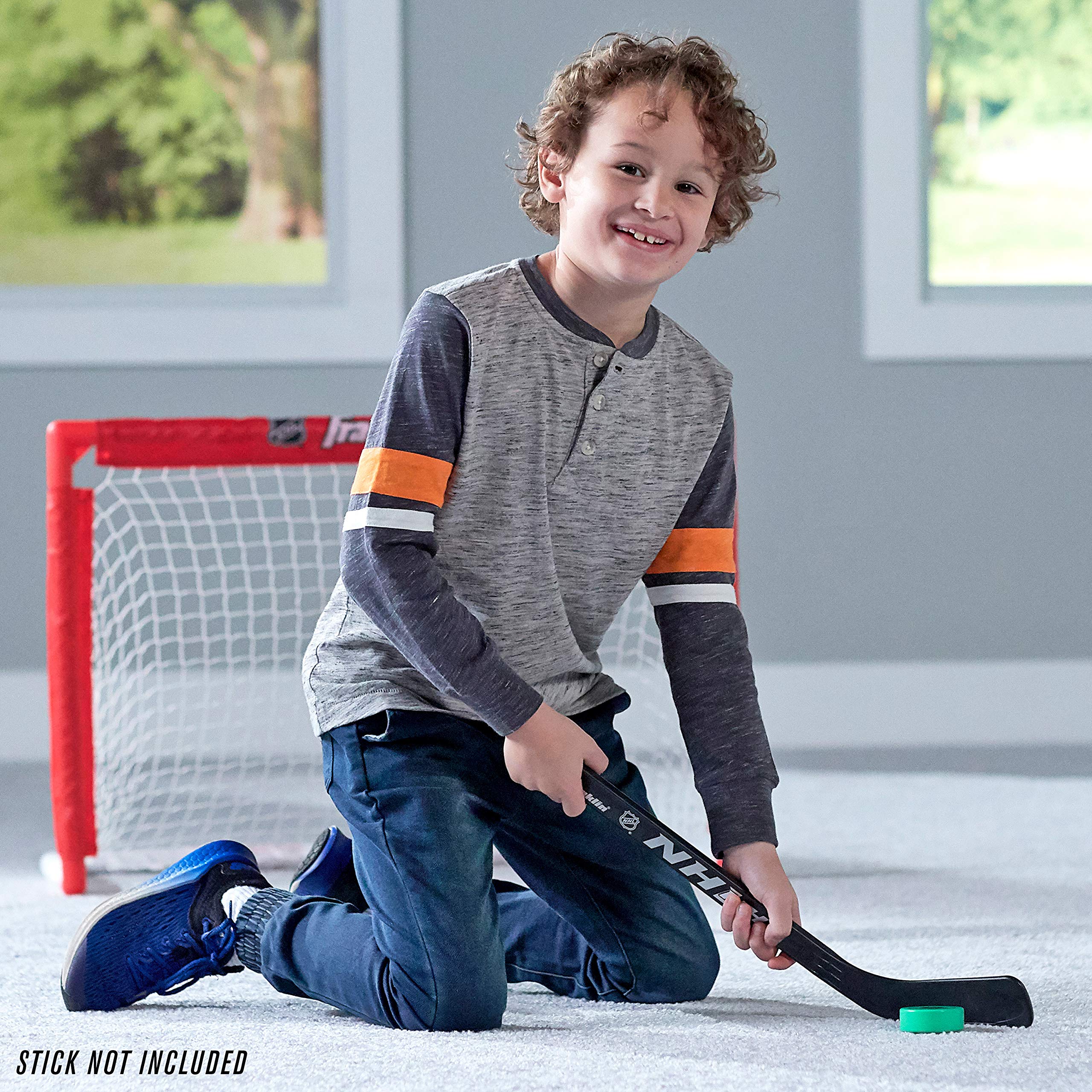 Includes 3 officially licensed NHL soft foam 2-inch mini pucks in assorted colors.