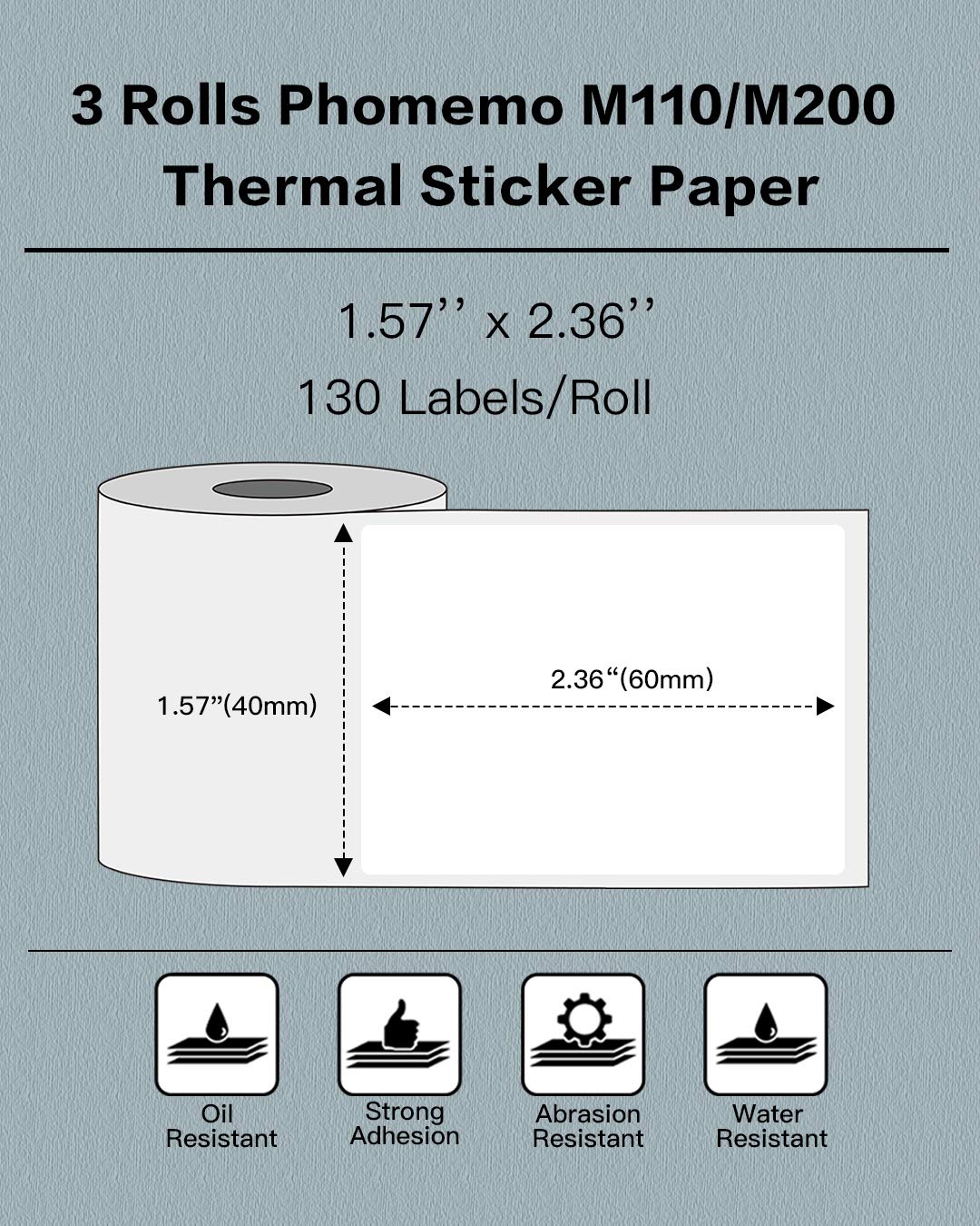 √ 3 Rolls M110/M100 Thermal Paper- 1.57'' x 2.36'' (40x60mm), 130 labels/roll, black on white. Good for address label, barcode label, product tag and more