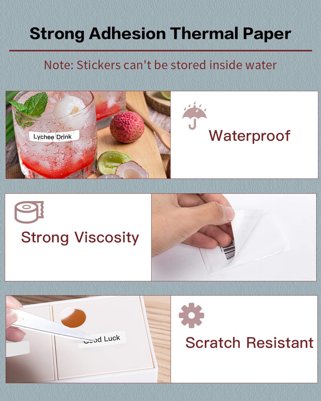 √ Thermal Label Features- Phomemo self-adhesive Multi-Purpose labels are water resistant, oil resistant, abrasion resistant, strong adhesion